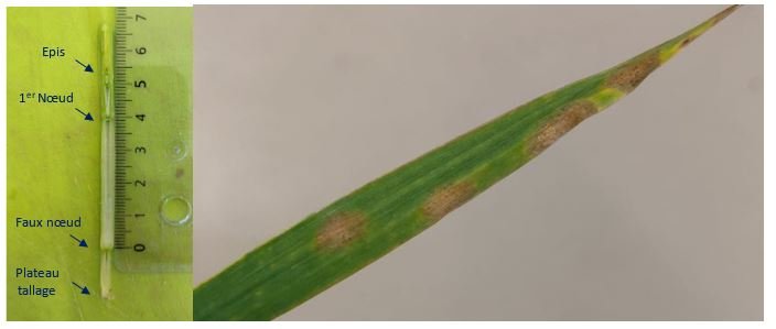 Concernant l'état sanitaire du blé dur, de la septoriose et de l'oïdium sont actuellement observables dans le bas de la végétation. Aucun traitement n'est recommandé pour l'instant, mais c'est le bon moment pour évaluer l'état sanitaire de la parcelle, en particulier pour les semis d'octobre. Un éventuel traitement pourra être envisagé autour du stade 2 nœuds (BBCH 32), voire plus tôt si les maladies progressent rapidement. Cela dépendra des conditions météorologiques dans les prochains jours.