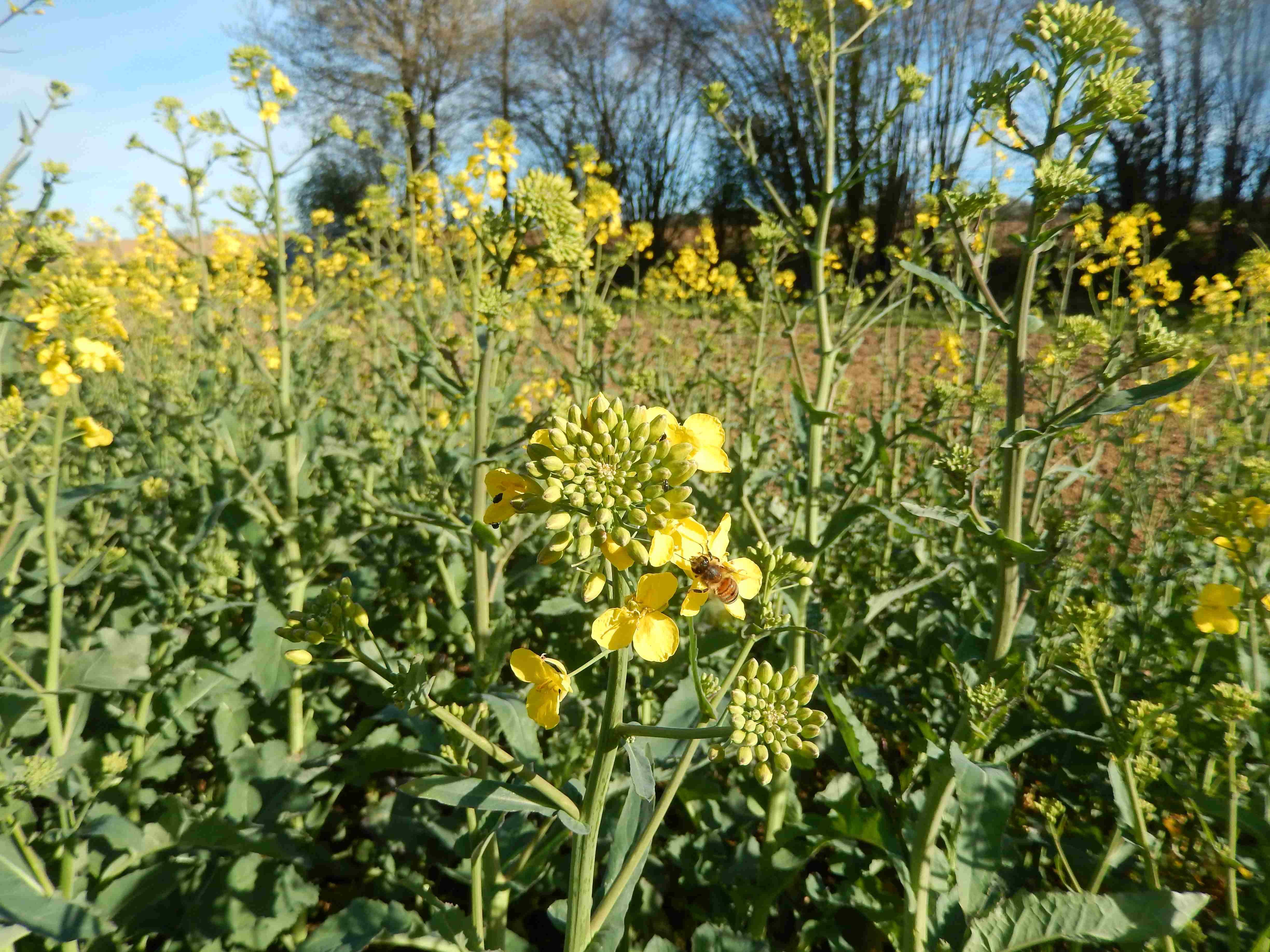 A la floraison, les méligèthes encore présents, ne sont plus nuisibles car ils trouvent du pollen sur les étamines des fleurs ouvertes. Les abeilles et autres pollinisateurs vont pouvoir butiner les fleurs et assurer la pollinisation du colza.